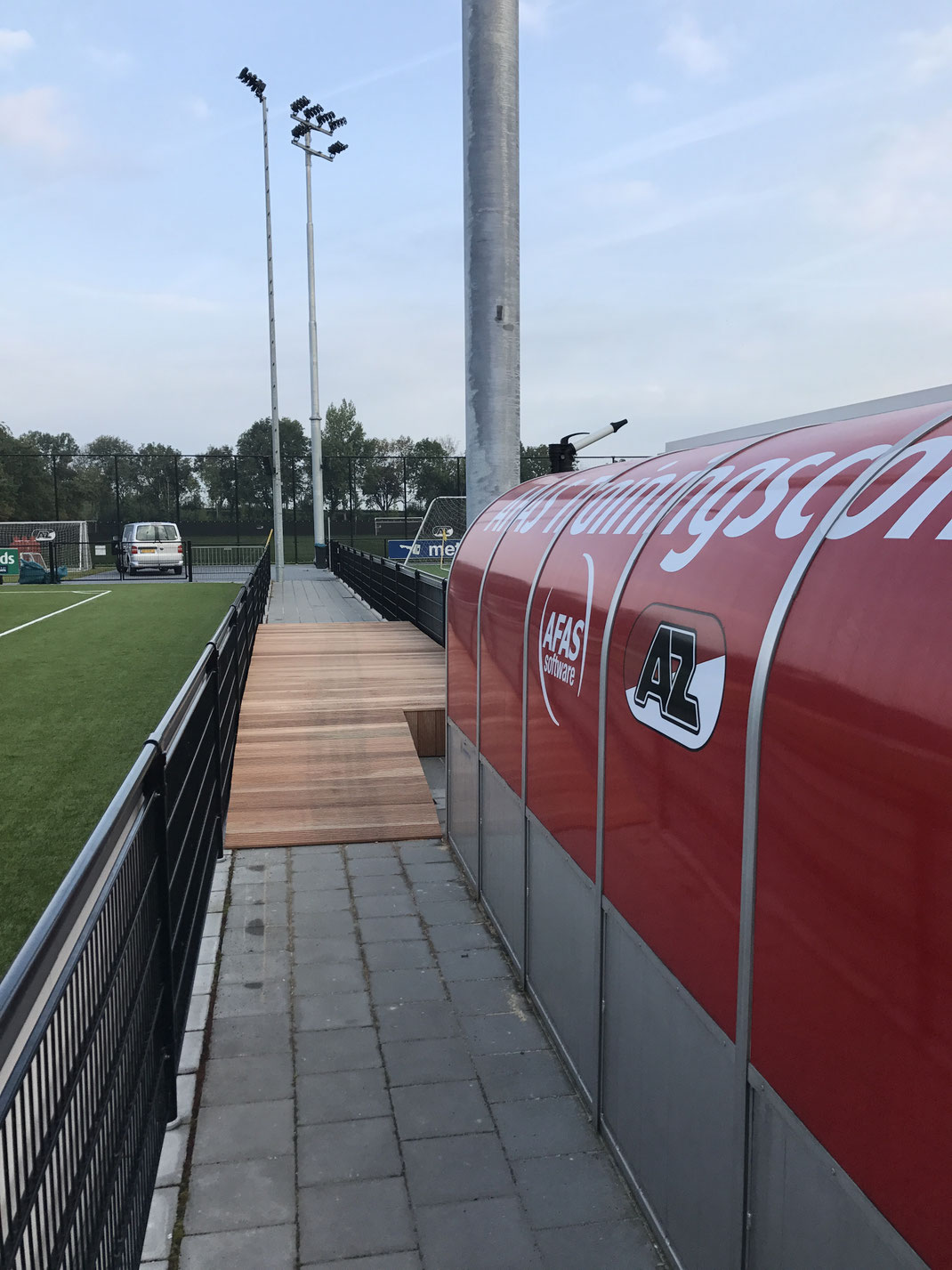 Bij het AZ trainingscomplex te Wijdewormer, een verhoging tussen 2 velden gemaakt t.b.v. rolstoelgebruikers.